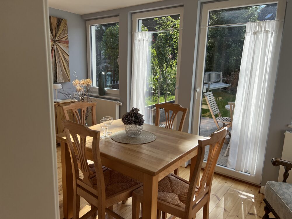 Die moderne Küche ist komplett ausgestattet – mit Backofen, Geschirrspülmaschine, Kühlschrank, Kaffeemaschine, Toaster und vielem mehr. Ob Frühstück im Essbereich oder Grillabend im Garten: In deinem Ferienhaus findest du alles, was du für leckere Mahlzeiten im Urlaub brauchst.
